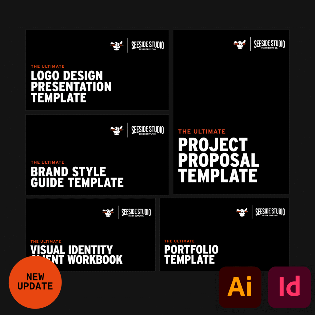 My ULTIMATE Bundle includes all 5 of my professional templates to help you attract high-ticket clients, present logo ideas and deliver a kick-ass visual identities.